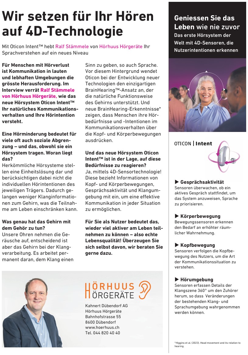Für Menschen mit Hörverlust ist Kommunikation in lauten und lebhaften Umgebungen die grösste Herausforderung. Im Interview verrät Ralf Stämmele von Hörhuus Hörgeräte, wie das neue Hörsystem Oticon Intent Ihr natürliches Kommunikationsverhalten und Ihre Hörintention versteht.